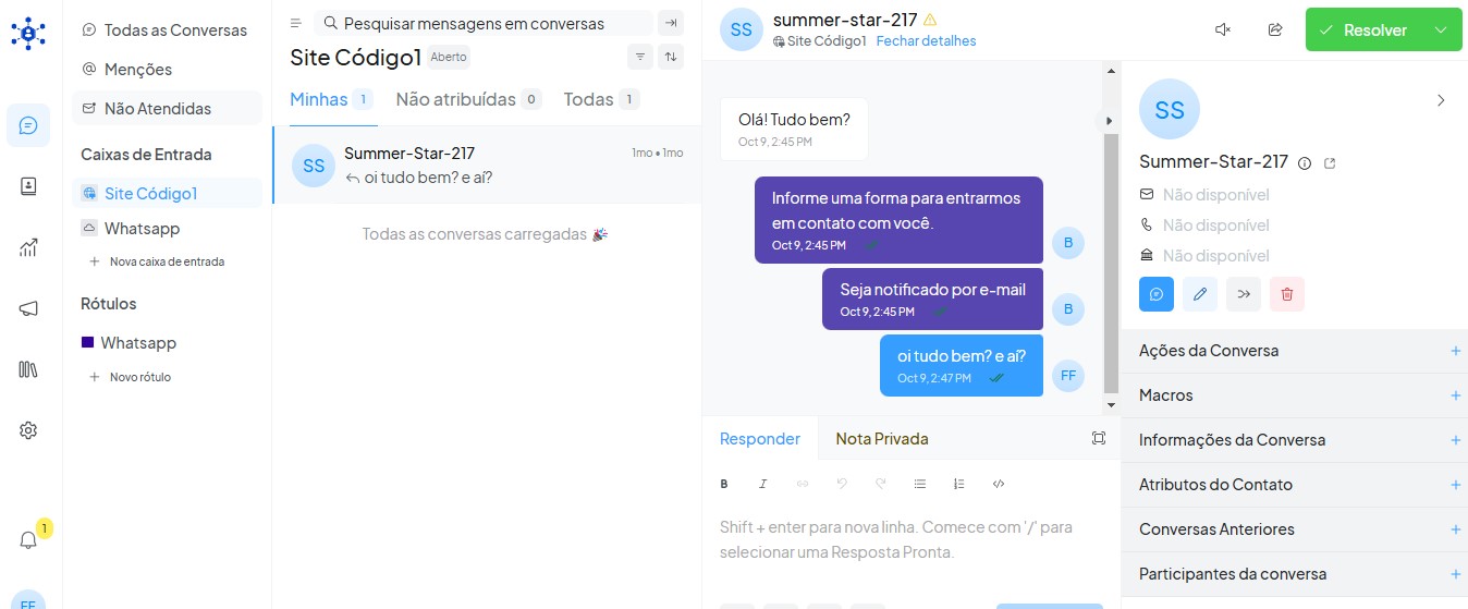 O sistema oferece funcionalidades de automação, permitindo que as empresas criem respostas automáticas e chatbots para responder a perguntas frequentes, filtrar solicitações e encaminhar clientes para o atendimento humano quando necessário.